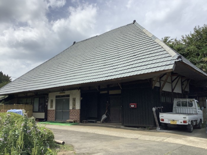 今回のお宅は、元々茅葺き屋根で数年前に板金の屋根を被せた建物です。台風により棟が飛んでしまったため、棟の取り付け直しのご依頼をいただきました。併せて、屋根全体の塗装も実施し、建物の保護機能を高めました。